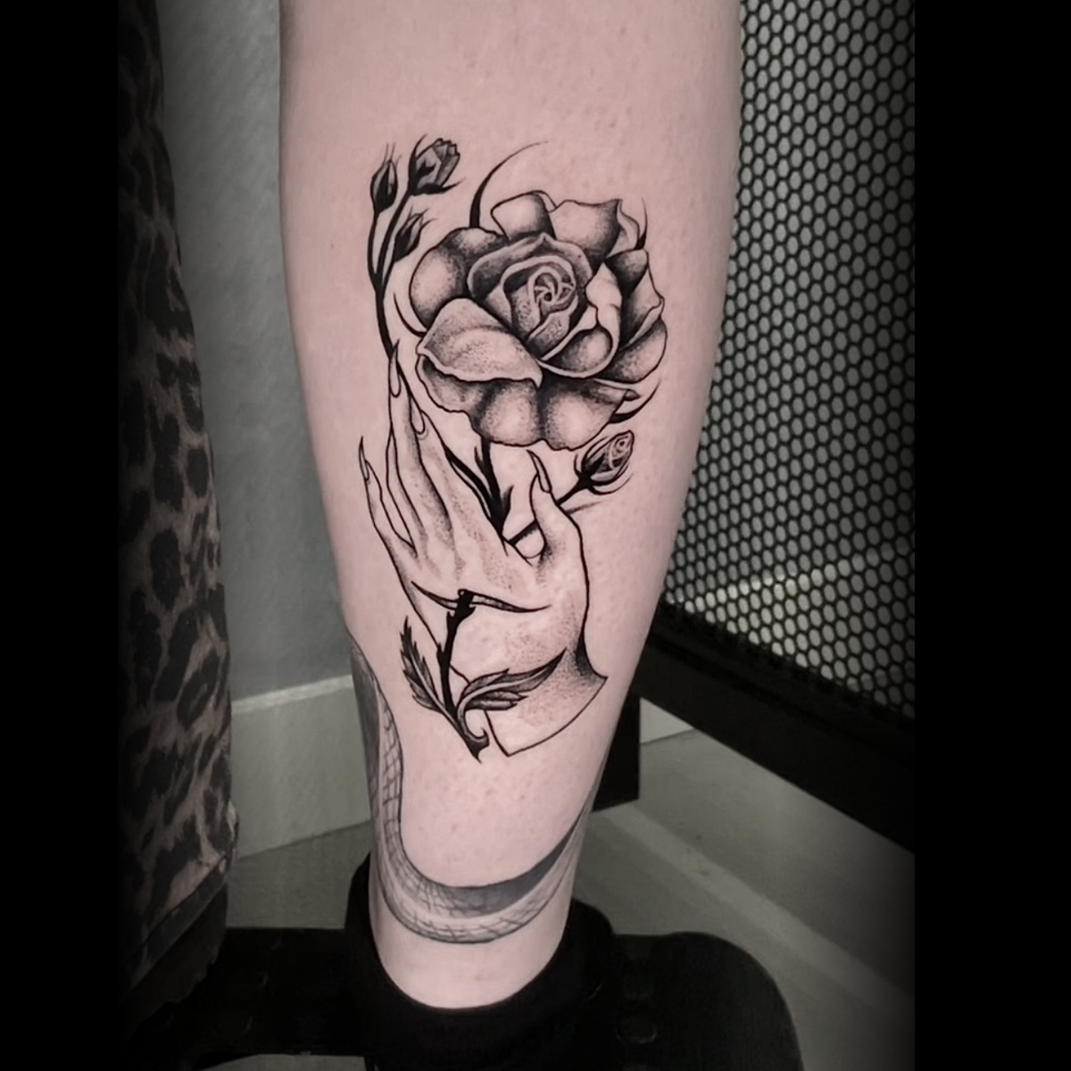 Vorige Volgende Black & grey Piercing rose Tattoo informatie Artiest Hanna Rosa Stijl Blackwork