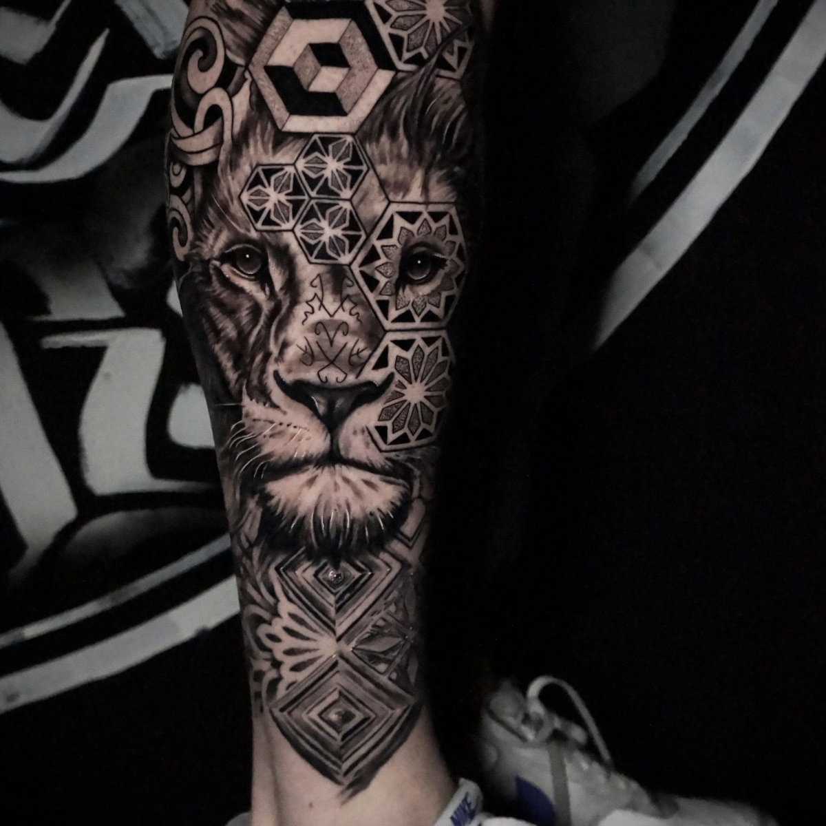 Black & grey Graphic Lion Tattoo informatie Artiest Gijsbert Uithol Stijl Realisme Vorige Volgende